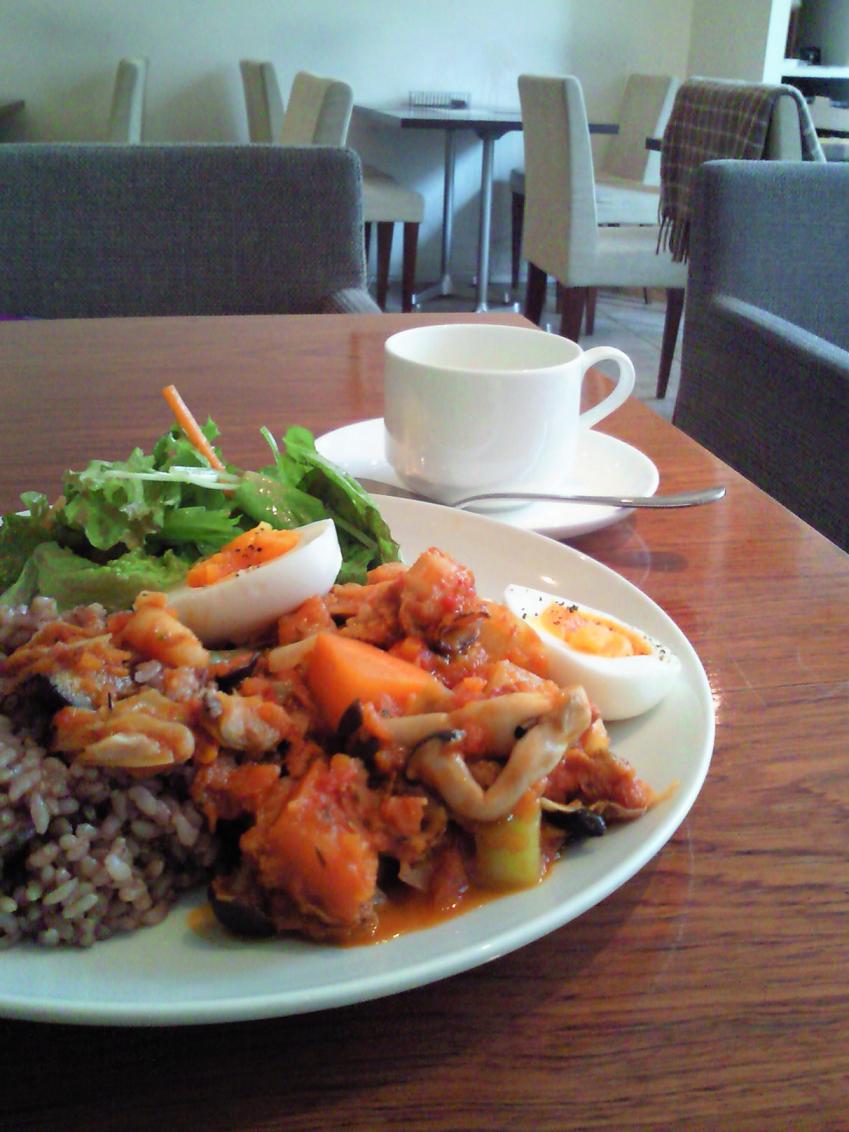 *野菜とシーフードのトマト煮込み、半熟卵添え