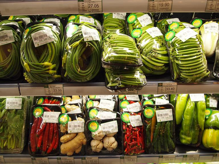 別のスーパー(「家乐福」=カルフール)の野菜売り場は