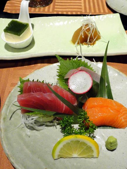 ●お刺身3種2貫盛り:まぐろ、かんぱち、サーモン