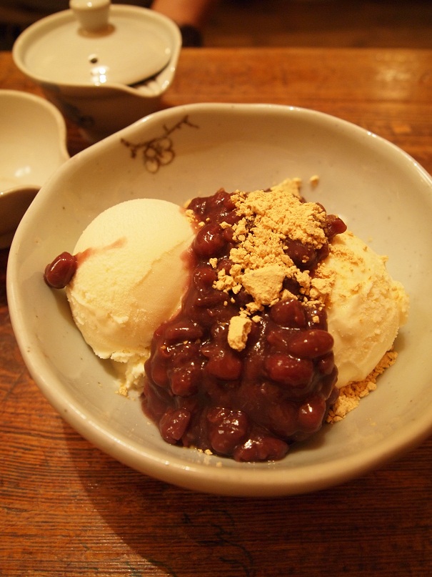撮影はNG(当たり前)なので、きなこあずきアイス&伝統茶を注文~♪
