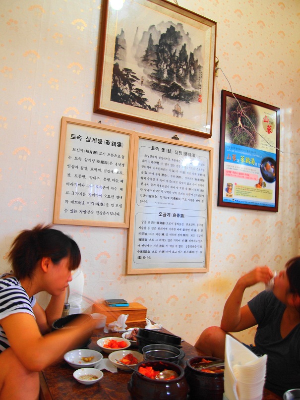 いかにもソウルっこ~って感じの女の子2人が立て膝で参鶏湯ランチなう。