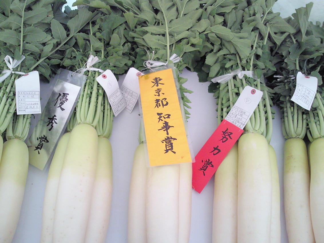 優秀賞・都知事賞・努力賞と並んだ大根たち。
