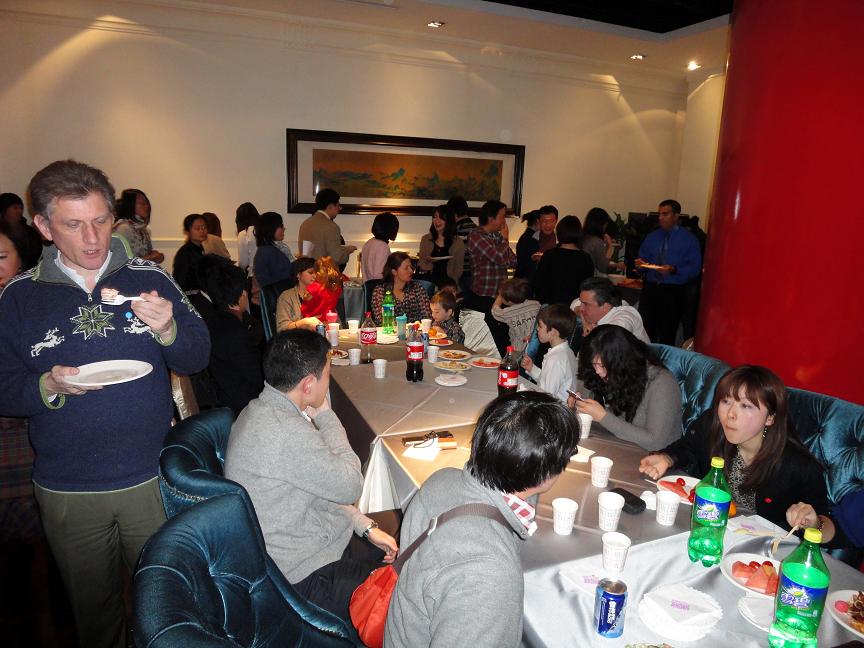 100名近くの先生と生徒が集まって、まるで結婚式の二次会のよう
