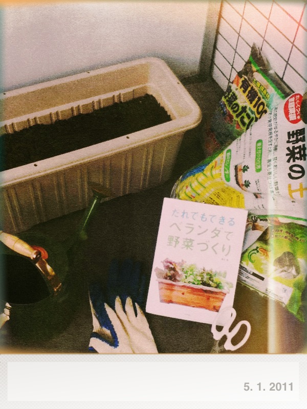 部屋の中がだいぶ片付いてきたので、ベランダで野菜づくりを始めてみた。